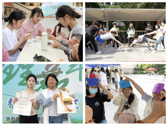 本次活动采用闯关集章的形式开展,设置了“微笑打卡”“害你在心口难开”“321看这边”“听歌识曲”“彩绘手工”“你比我猜”“群龙取水”“即兴表演”等项目。同学们自由组队、积极参与,在游戏与体验中关注自我、认识他人,释放压力、感受喜悦,每个人脸上都洋溢着青春的笑容。